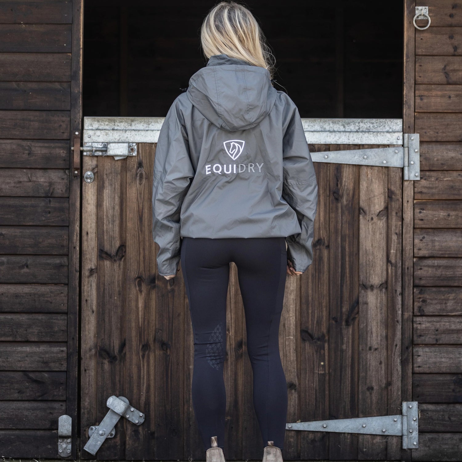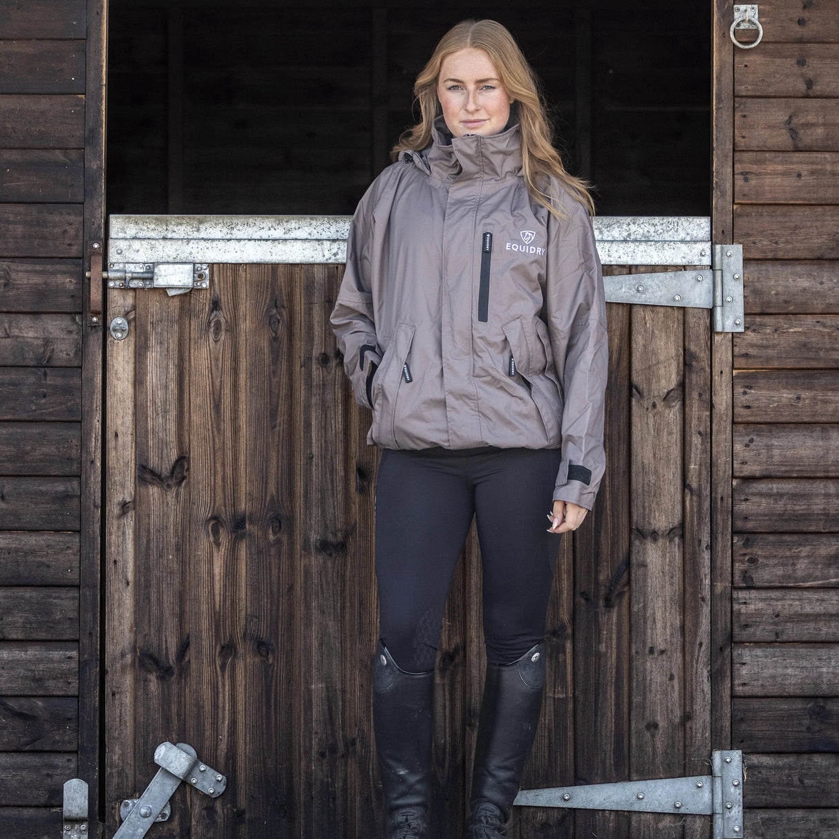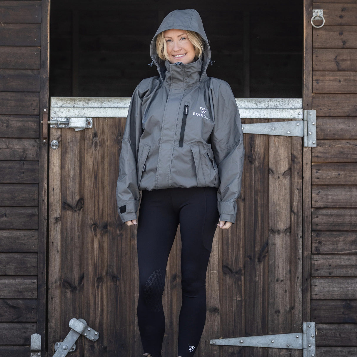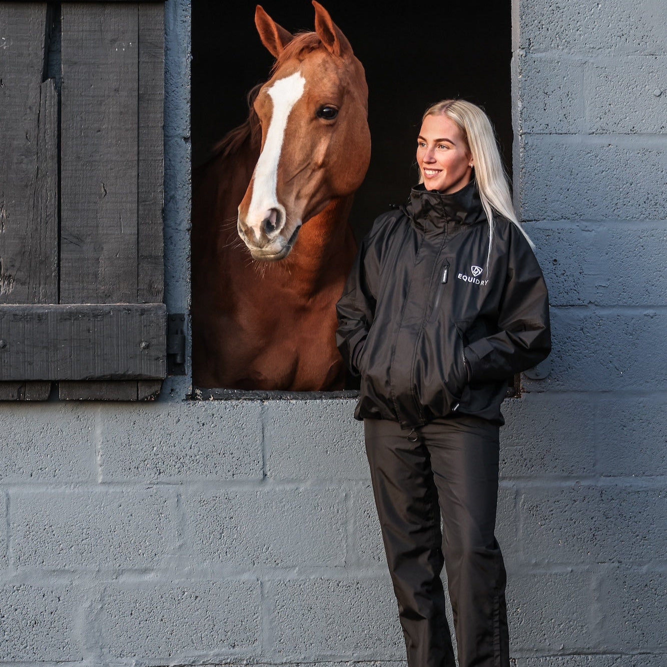 The EQUIDRY Shortie is a short, blouson-style jacket designed with advanced EQUIGUARD® technology, offering an impressive 20,000mm waterproof rating for outstanding protection against the elements. Its breathable mesh lining provides comfort in warmer weather while also allowing versatility for layering in colder conditions. The oversized, unisex fit ensures freedom of movement with ample room for additional layers or a body protector.
