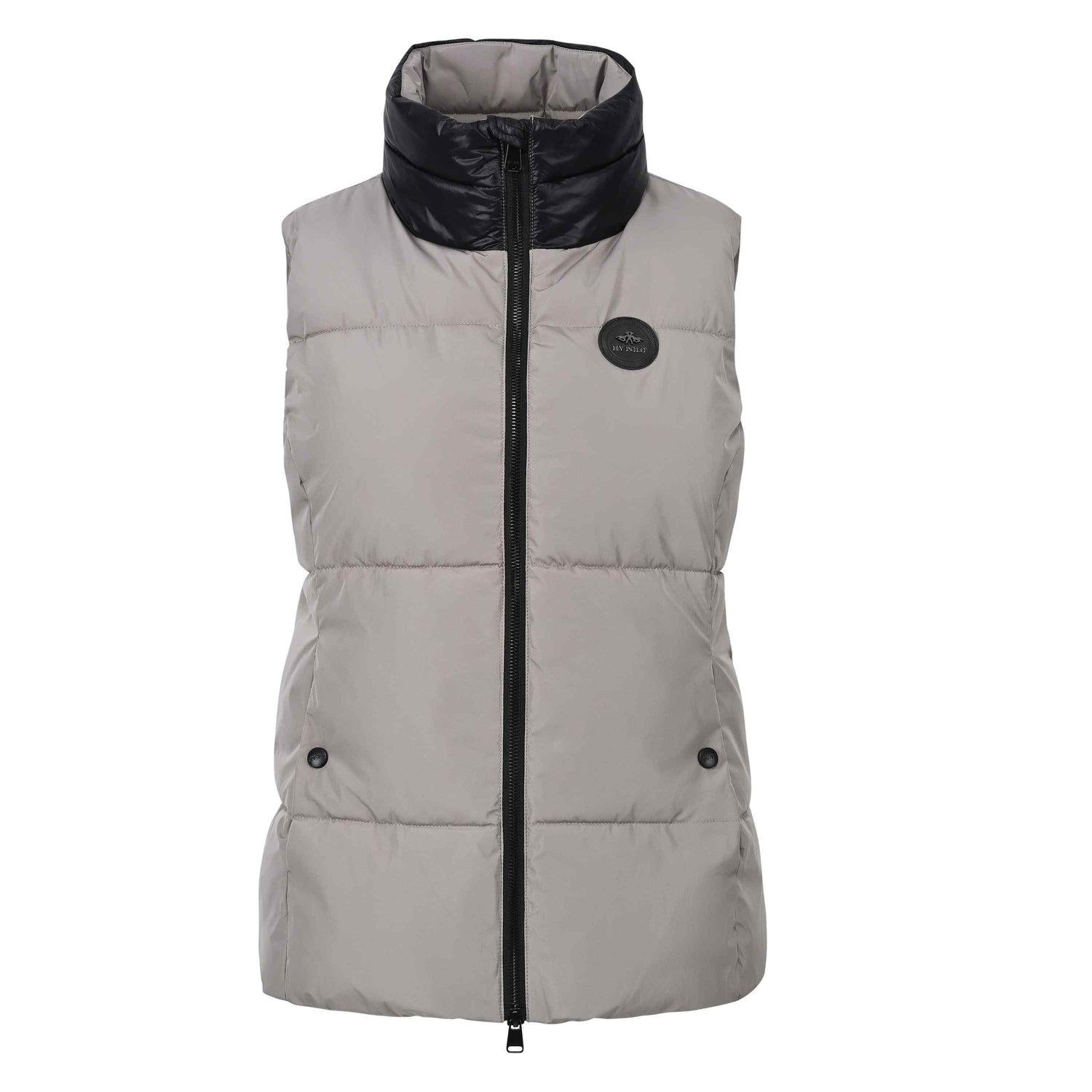 The HV Polo Heidy Body Warmer features a sleek and lightweight design with fake down padding. This elegant medium padded bodywarmer is made with a combination of dull and shiny fabric, providing both style and function. It is windproof and features a 2-way zip closure at the front with zip pullers adorned with the HV Polo logo.