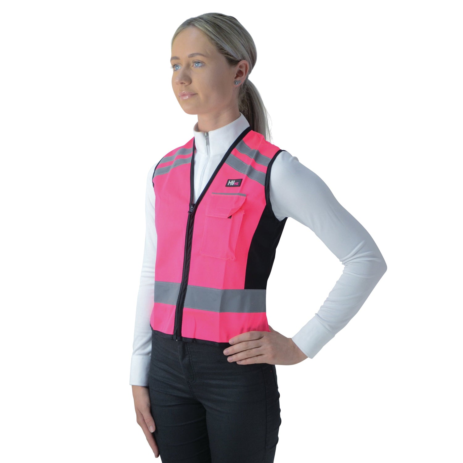 Gilet HyVIZ élégant avec PLEASE PASS WIDE & SLOW imprimé au dos. Marqué CE. Certifié EN1150. Tissu respirant avec fermeture zippée YKK sur le devant et poche pour votre téléphone portable. Coupe élégante pour une coupe flatteuse. Fluorescent avec bande réfléchissante argentée pour plus de style et de sécurité à l'avant et à l'arrière. Visibilité toute l'année. Lavable en machine à 40ºC. 5 tailles - X Petit Petit Moyen Grand X Grand. Disponible en jaune/noir ou rose/noir.