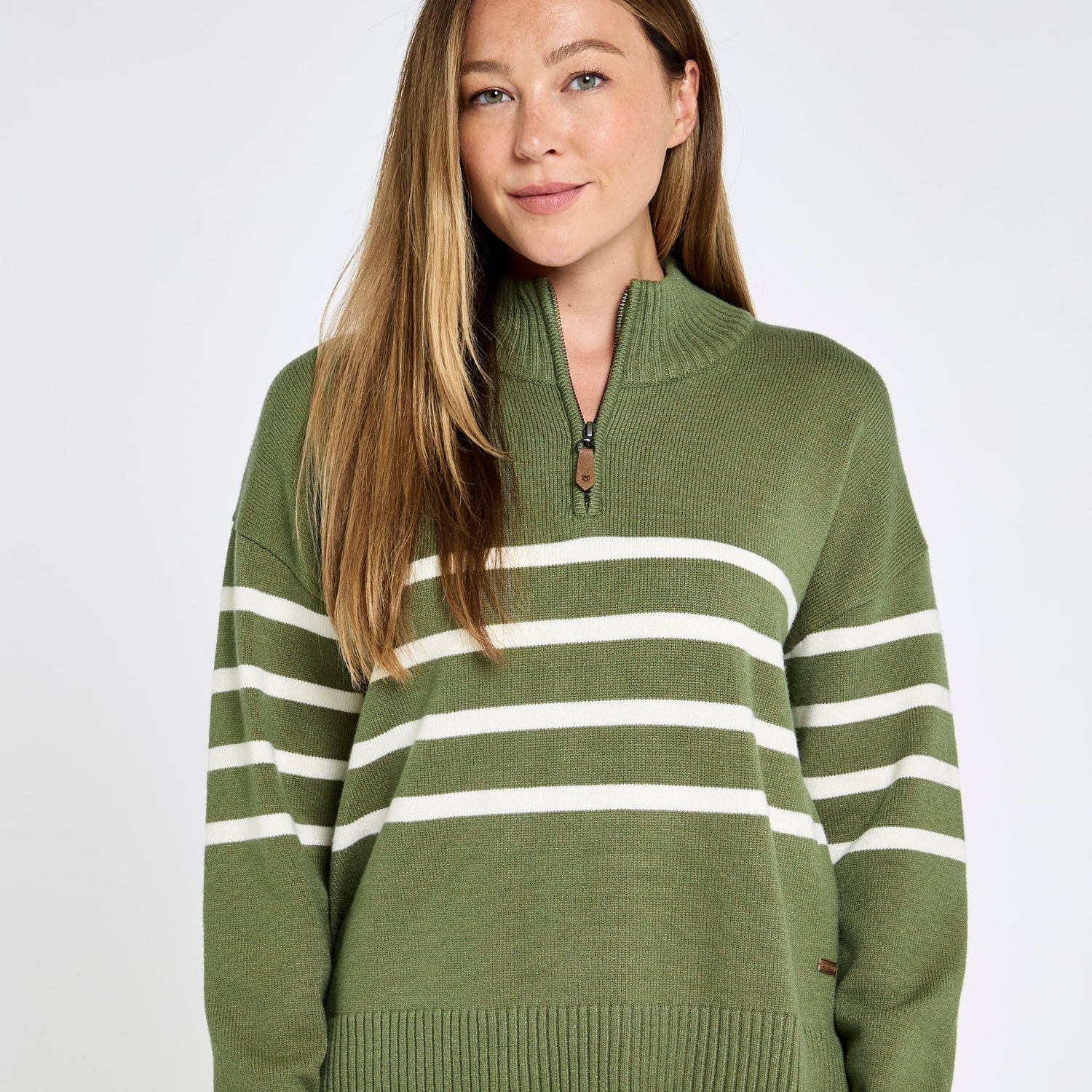 The Dubarry Fonthtill sweater is lightweight and wonderfully soft, made with a combination yarn designed to be soft to the touch, hold its shape well and be machine washable. The crisp contrasting stripes have a distinct nautical feel, very at home by the sea, but bring a fresh spring touch wherever you take it. The ribbed collar can be zipped up or down giving you a light spring layer that’s also cosy on cooler spring evenings.