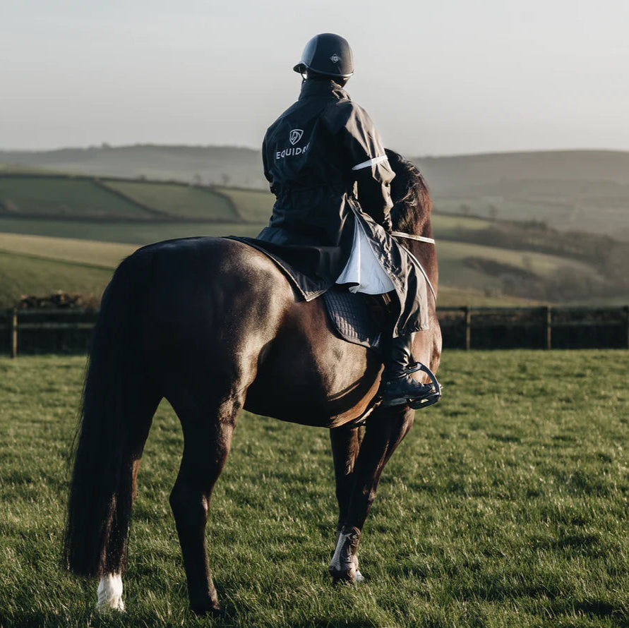 Stay protected and comfortable with the EQUIDRY Women's Thin Fleece Reflective Evolution coat. Featuring an impressive 20,000mm waterproof rating and full breathability, it keeps you dry and warm without overheating. Its oversized, layer-friendly design fits easily over a body protector, while reflective logos and trims enhance your visibility for safer rides. Hidden storm skirts provide extra leg coverage in the saddle, and riding side zips keep the coat securely in place. With adjustable cuffs, multiple pockets, and internal embroidery access, this coat combines performance and practicality for every equestrian adventure.