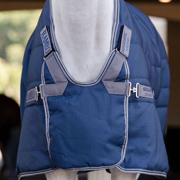 Horseware Ireland Rambo Optimo 400g Plus Stable Rug - Navy/Beige/Baby Blue/Navy / 6'9 is backordered and will ship as soon as it is back in stock.