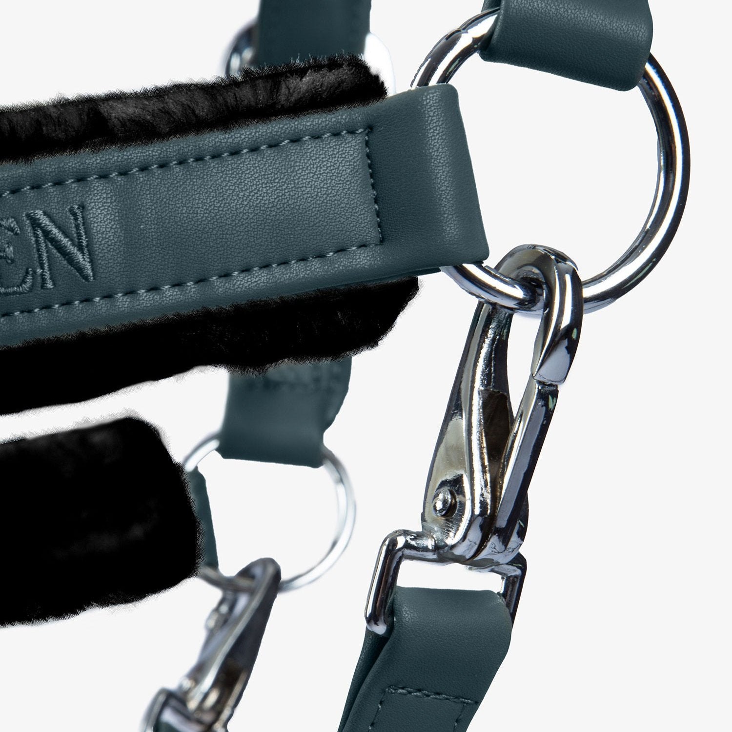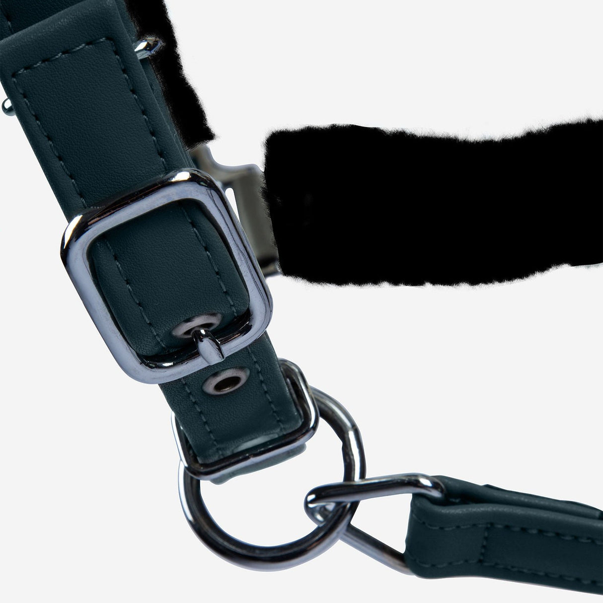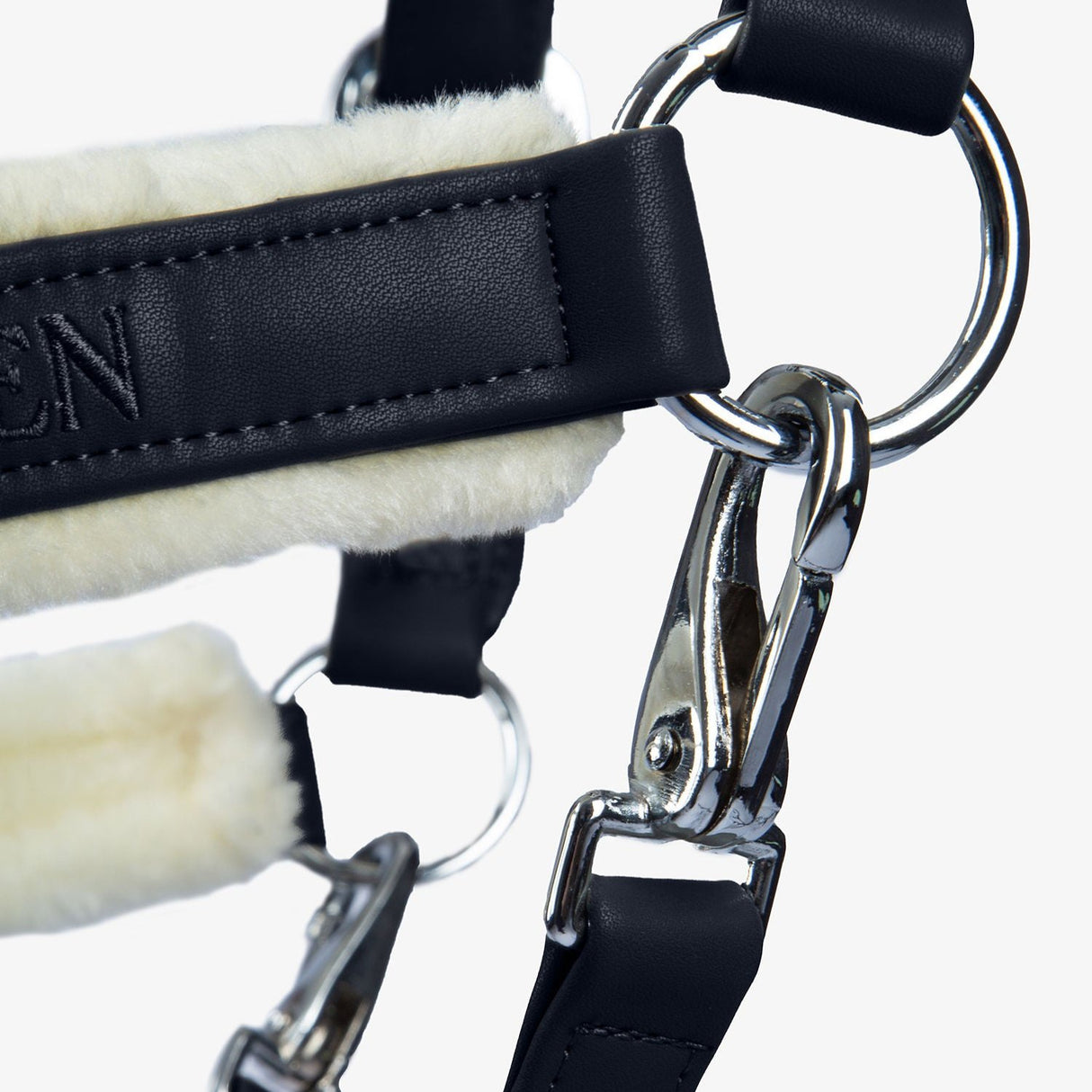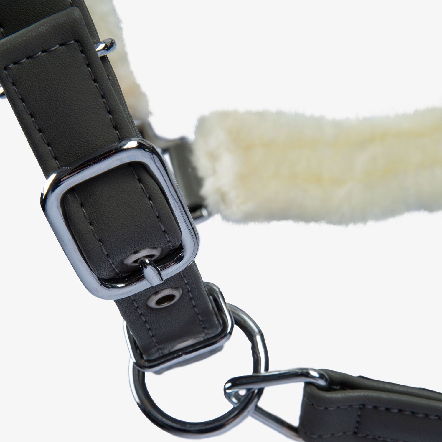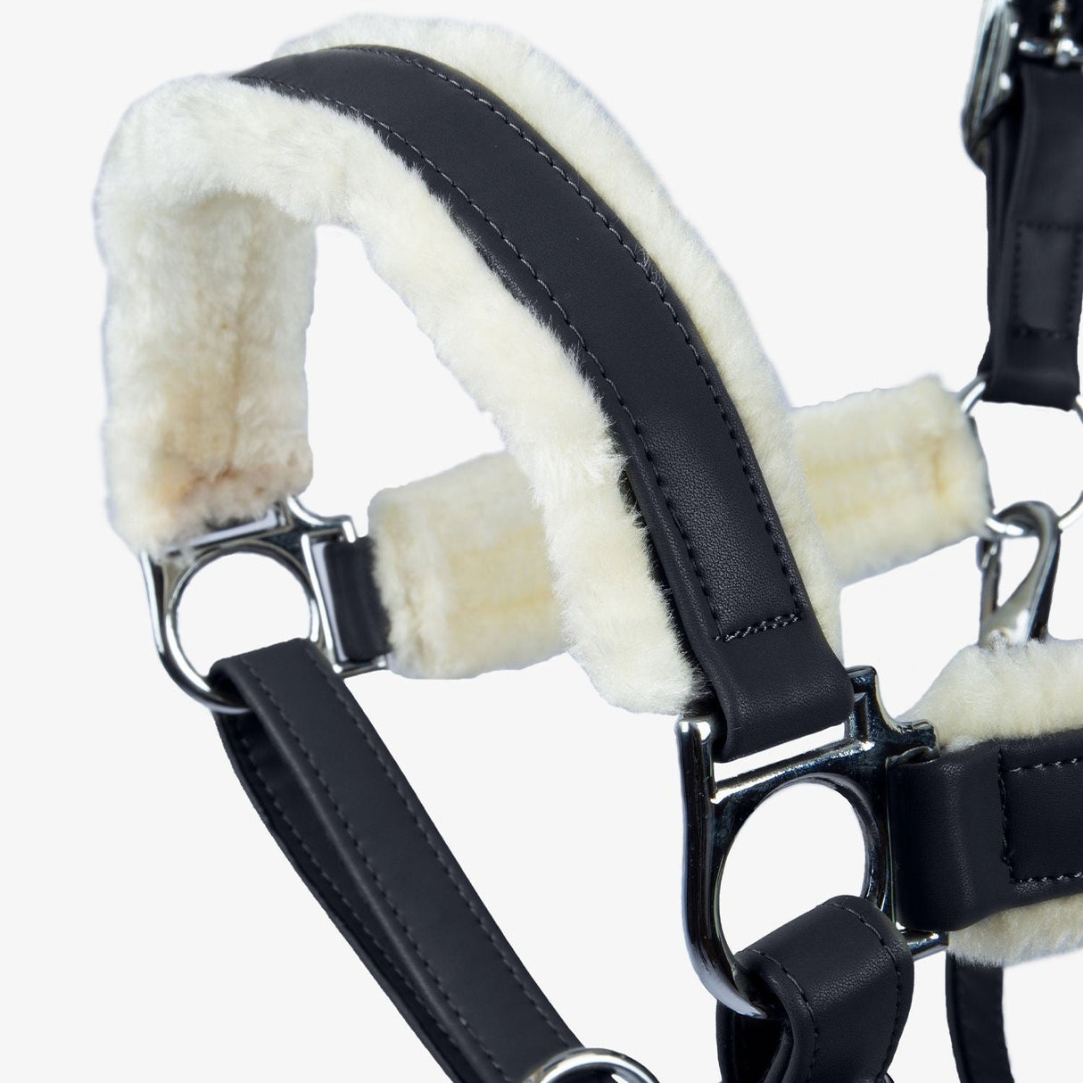 The PS of Sweden Premium Fluffy Halter features a leather imitation design that perfectly complements your premium brushing and bell boots. Its anatomical shape, reinforced nylon webbing, and soft faux fur lining provide maximum comfort for your horse.
