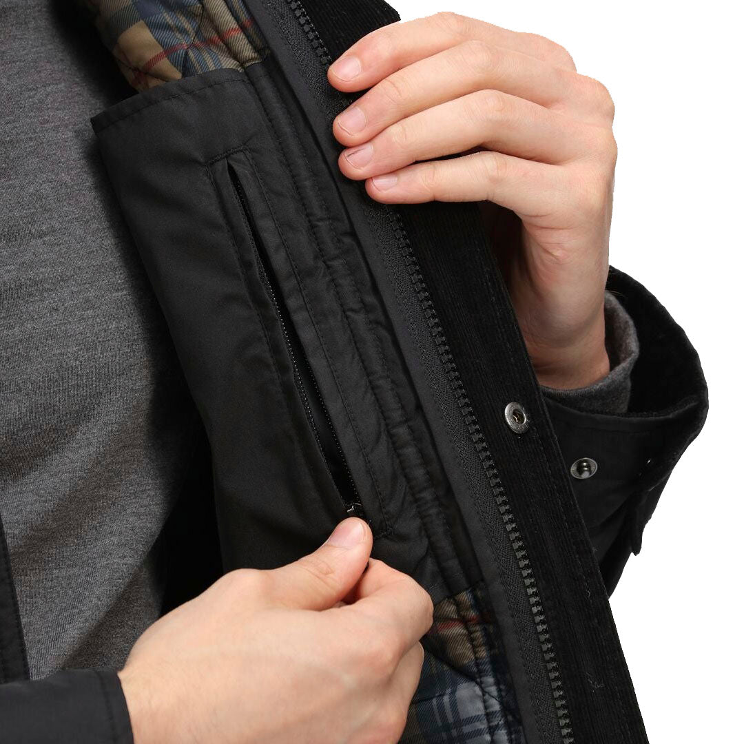 The Padbury Quilted Jacket from Regatta Professional. Water repellent, insulated and country vibes – the men’s work jacket is perfect for getting the job done in style. The men’s jacket features water-repellent fabric to see off light rainfall at work. It’s ideal for work on the farm, stables or country estate, and the corduroy shoulder and elbow overlay panels adds to the country casual style. The Thermoguard insulation keeps cold weather at bay.