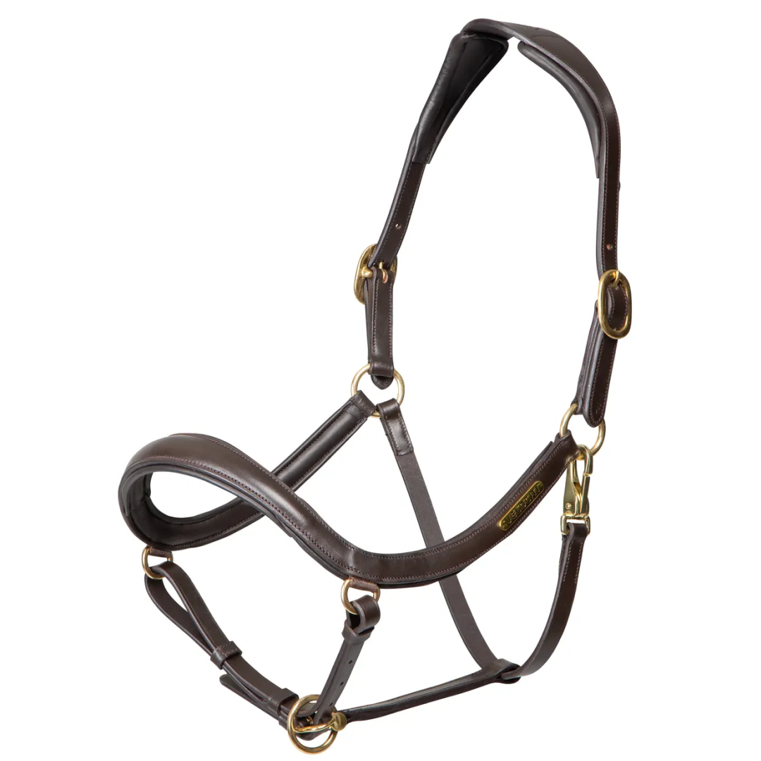 - The headcollar fastens with a double ended headpiece and at the nose via a crank style rear strap, a clip throatlash offers convenience