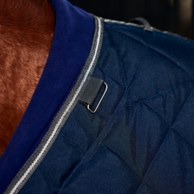 The diamond quilted 1000 denier outer delivers exceptional durability and protection, while the 220g polyfill offers superior warmth with a sleek, polished appearance. Thoughtful details like the Cozi-Cuff neck collar and memory foam wither relief pad enhance comfort by minimising rubbing and pressure, ensuring long-lasting wearability in the stable.