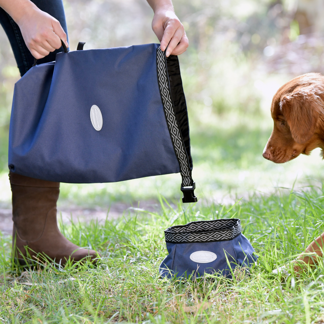 Weatherbeeta Explorer Dog Food Portable Bag - Navy / One Size is backordered and will ship as soon as it is back in stock.